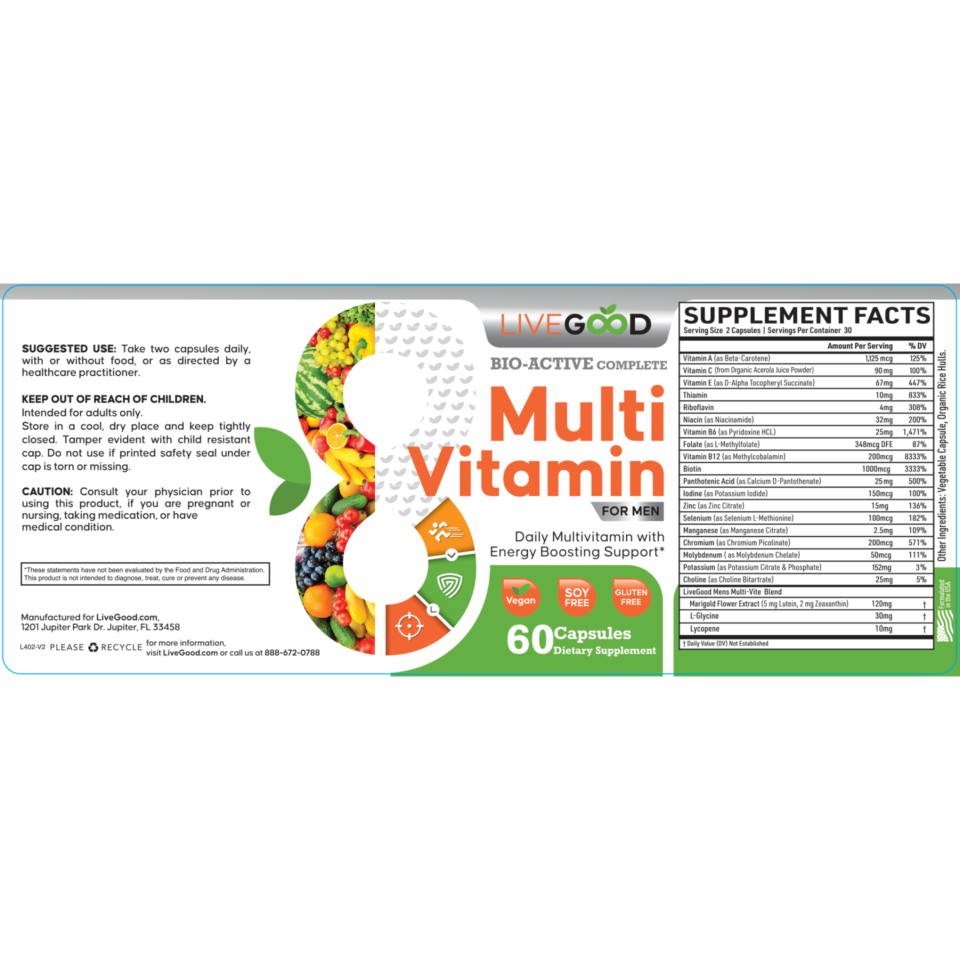 Das Bio-Active Complete Multivitamin von LiveGood wurde speziell entwickelt, um den täglichen Nährstoffbedarf von Männern und Frauen optimal zu decken. Mit einer ausgewogenen Mischung aus bioaktiven Vitaminen, essenziellen Mineralstoffen und Antioxidantien unterstützt es die allgemeine Gesundheit, das Immunsystem und das Energieniveau.